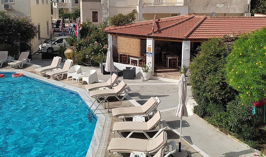 - bazén, sluneční terasa (lehátka a slunečníky u bazénu zdarma; na pláži za poplatek)