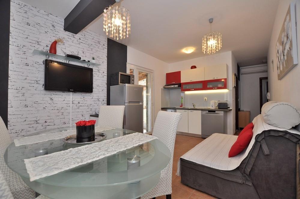 - Vybavení: varná deska elektrická, TV, satelit, pračka, nádobí, myčka na nádobí, jídelní kout