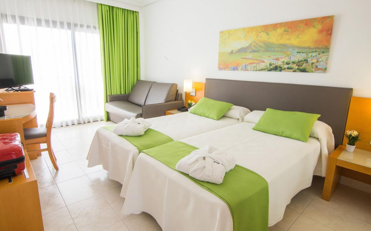 Pokoj typu Premium s bočním výhledem na moře má stejné vybavení, navíc župany v koupelně, boční výhled na moře.
