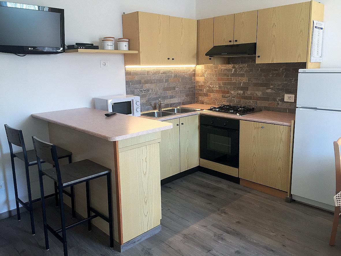 obývací pokoj s kuchyňským koutem a rozkládacím gaučem pro 2 osoby,