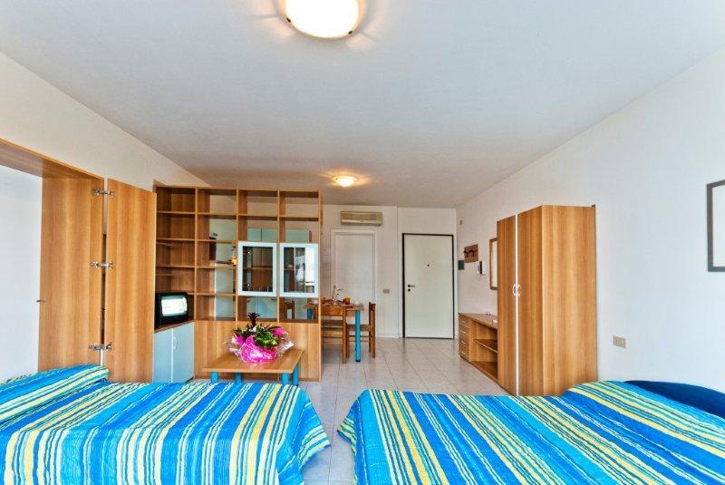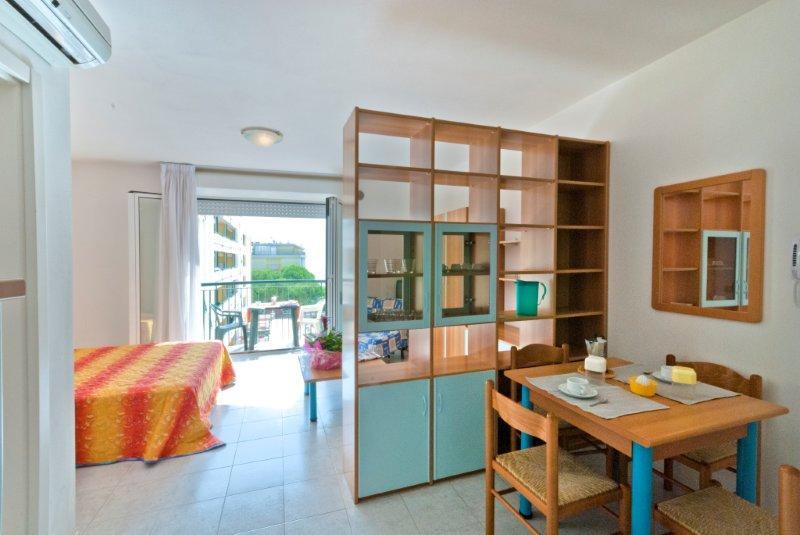 obývací pokoj s rozkládacím dvoulůžkem a kuchyňským koutem,