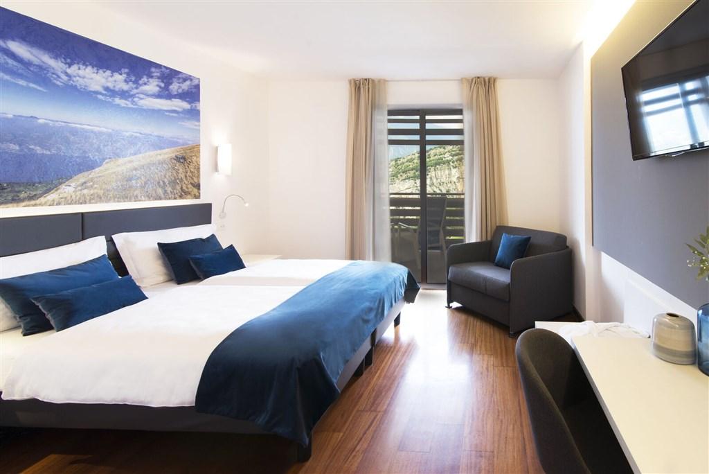 - Dvoulůžkové pokoje Superior: cca 20 m2, v roce 2019 renovované. Výhled na jezero, balkon a možnost jedné přistýlky pro dítě do 17,99 let.