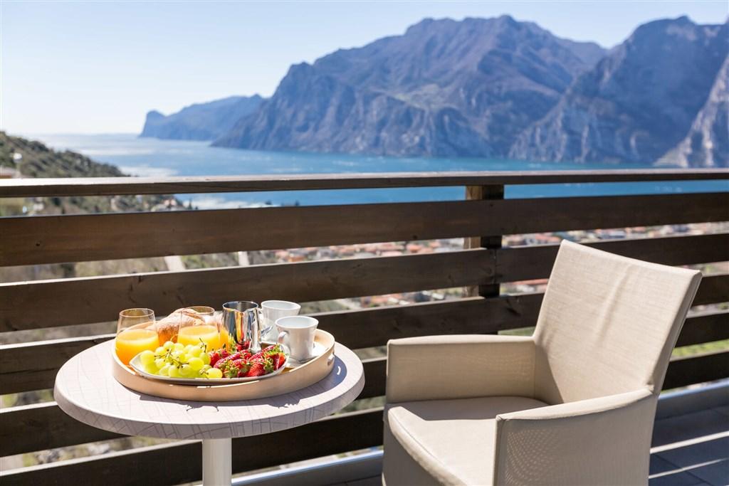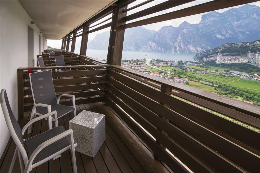 výhledem na jezero Lago di Garda. Hotel byl postaven v roce 2000 a