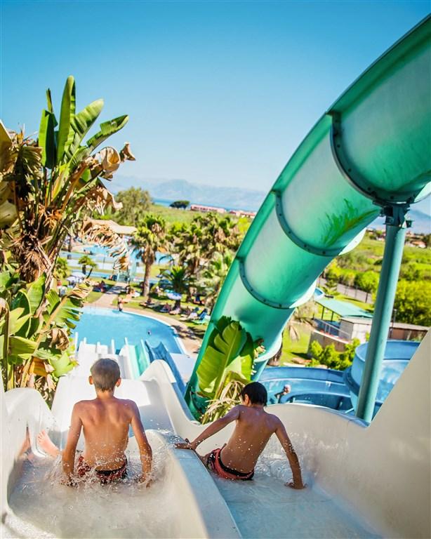 jeden krytý bazén, aqua park o rozloze 40.000 m² slunečníky a