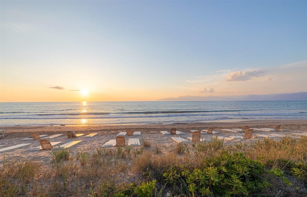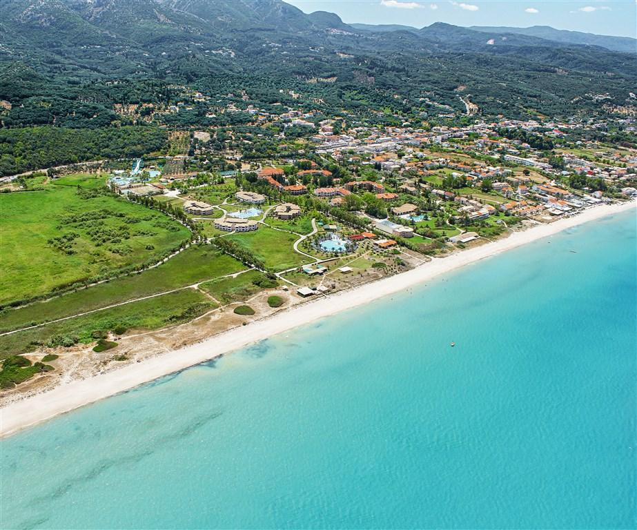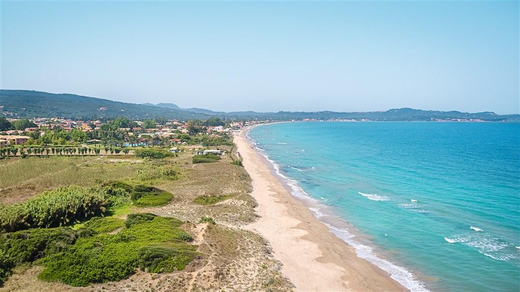 dlouhé písečné pláže na okraji letoviska Acharavi na severním