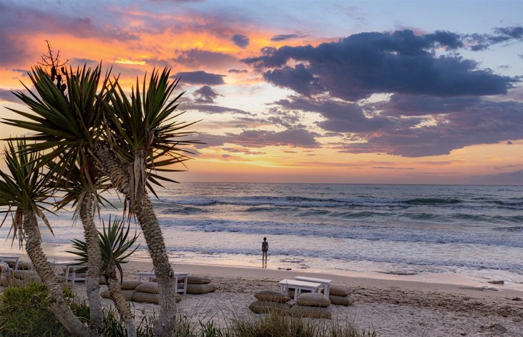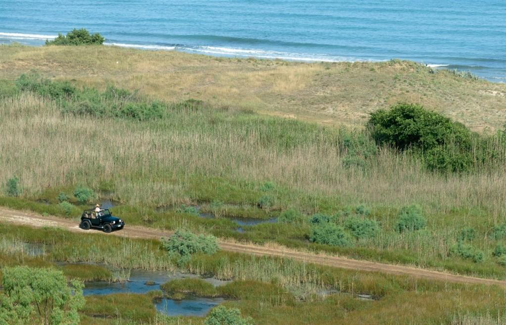 kilometr dlouhá písečná pláž s pozvolným vstupem do moře nesoucí