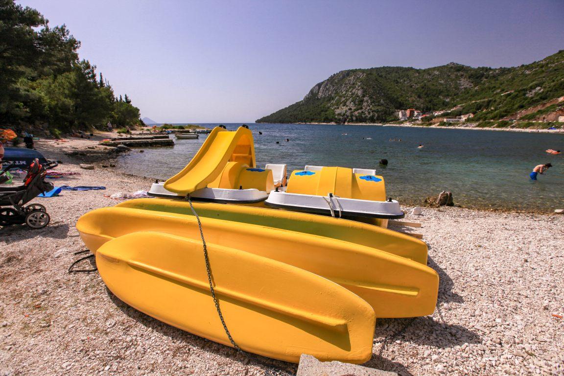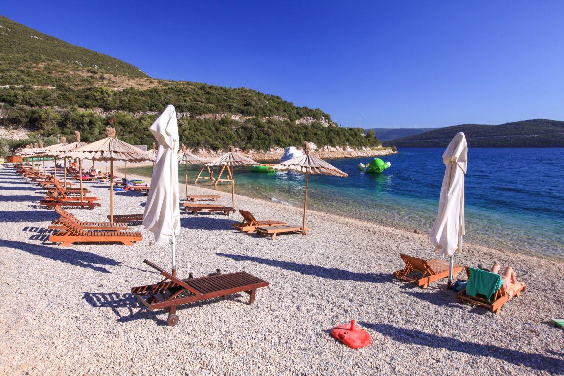 Typ pláže - skalnaté, opalovací molo, oblázkové