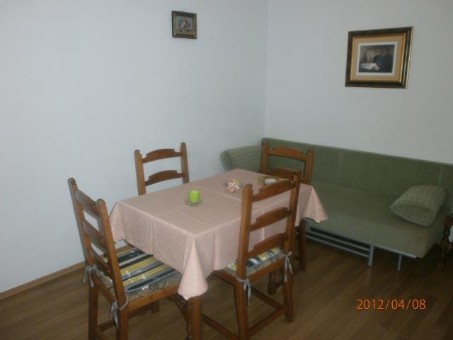 Apartmán 4+2Apartmán se nachází v prvním patře a má k dispozici jednu ložnici se třemi lůžky, jednu dvoulůžkovou ložnici, kuchyňský kout, obývací pokoj s jídelním koutem a rozkládací pohovku max. pro 2 osoby, vlastní sociální zařízení a velkou terasu s výhledem na moře. Terasa je společná se studiem 2.