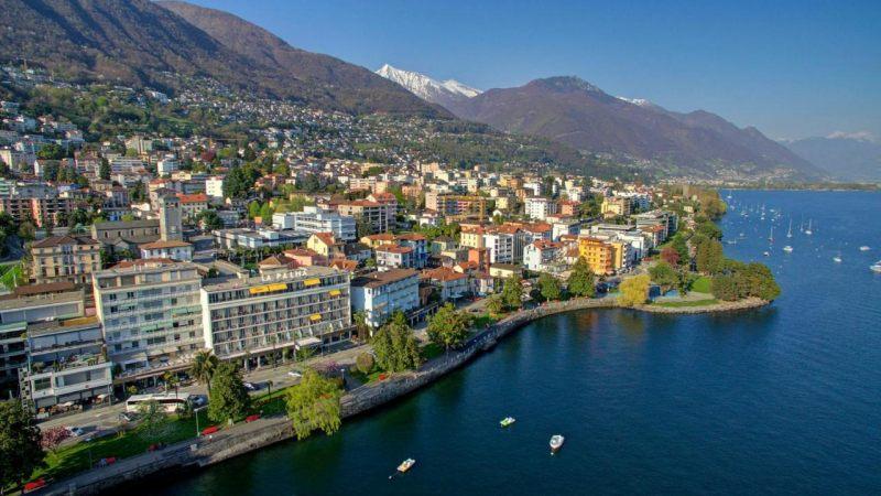 promenádě, centrum Locarna 300m, lanovka FLMS 550m, golf v Losone