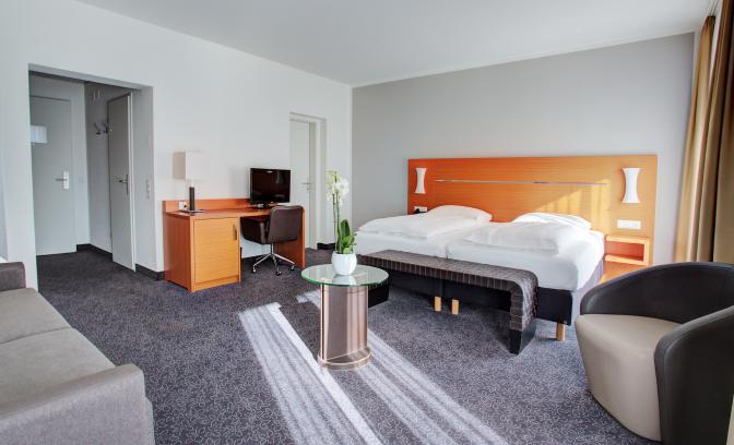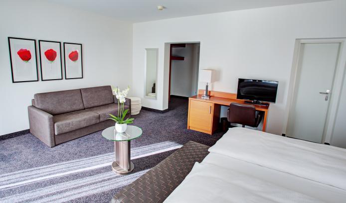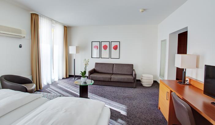 pokoje se sprchou a WC, fén, klimatizace, topení, sedací kout,