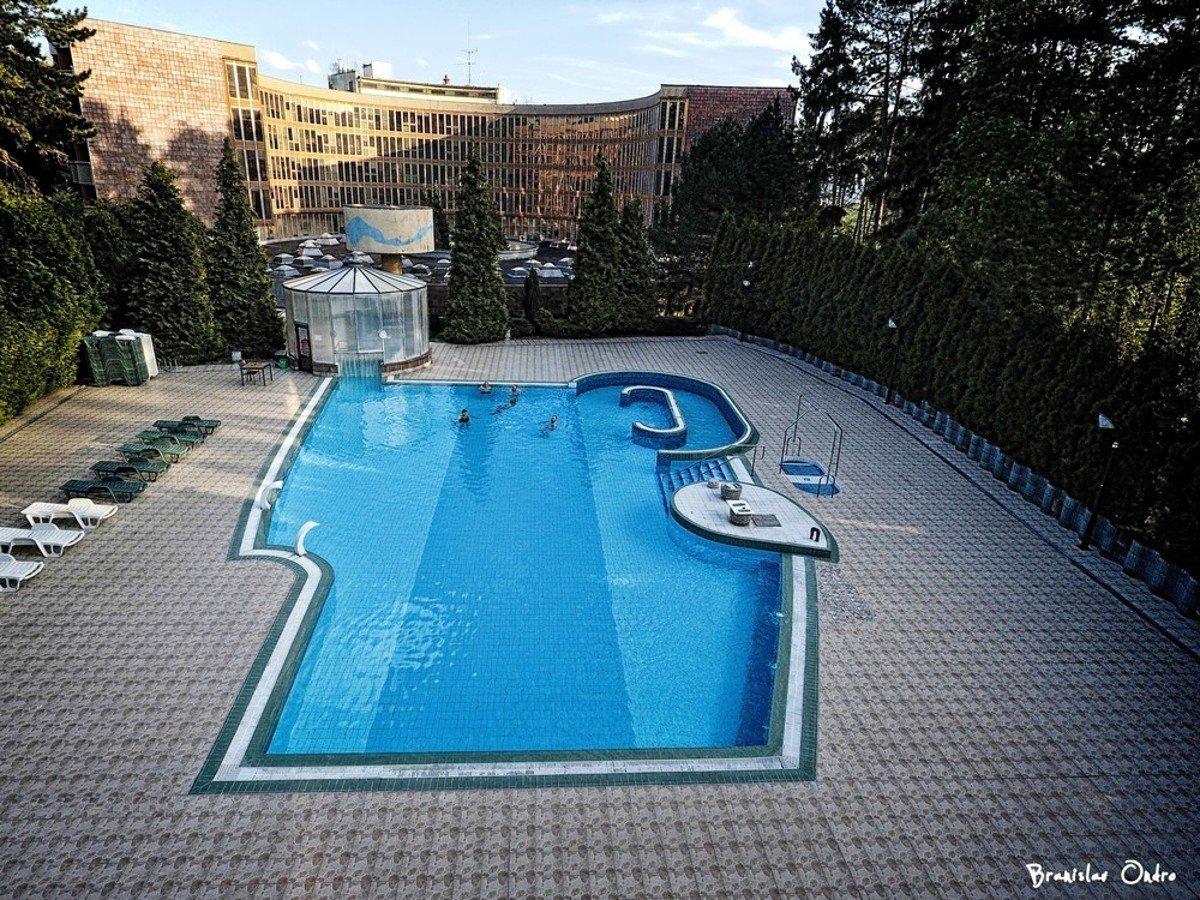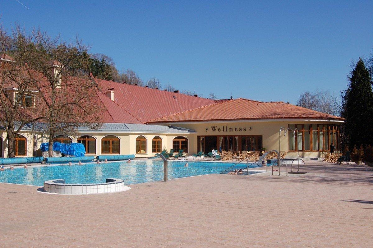 Vlastní balneologické centrum, Vodní svět - tj. soustava termálních bazénů (tří vnitřních - tzv. Žlutý 38 °C a tzv. Zelený 32 °C, tzv. Bílý bazén s mořskou vodou 35-360C) a venkovní termální bazén 34 °C s celoročním provozem.