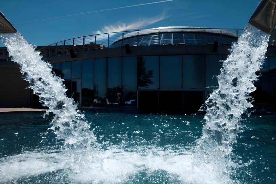 sedacími plochami a venkovními a vnitřními vířivkami. Uprostřed