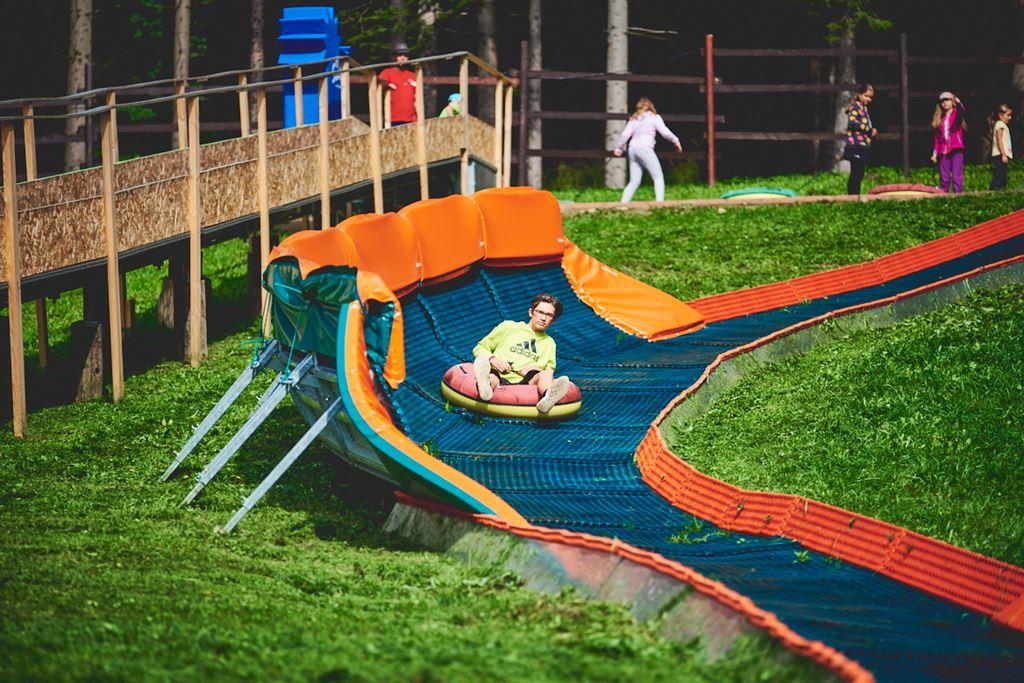 V létě: cyklostezky, turistické trasy, lanový park, dětské hřiště i