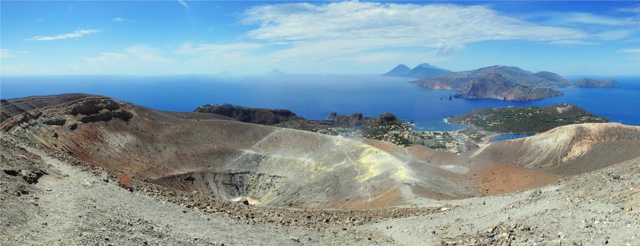 ráno výstup na kouřící VELKÝ KRÁTER (391 m), odkud se naskýtá nádherný výhled na celé souostroví, možnost obejití kráteru a pozorování dýmajících fumarol a usazenin síry. Odpoledne relaxace u moře, fakultativně okruh kolem ostrova Vulcano lodí s koupáním (cca 25 EUR).Den 4