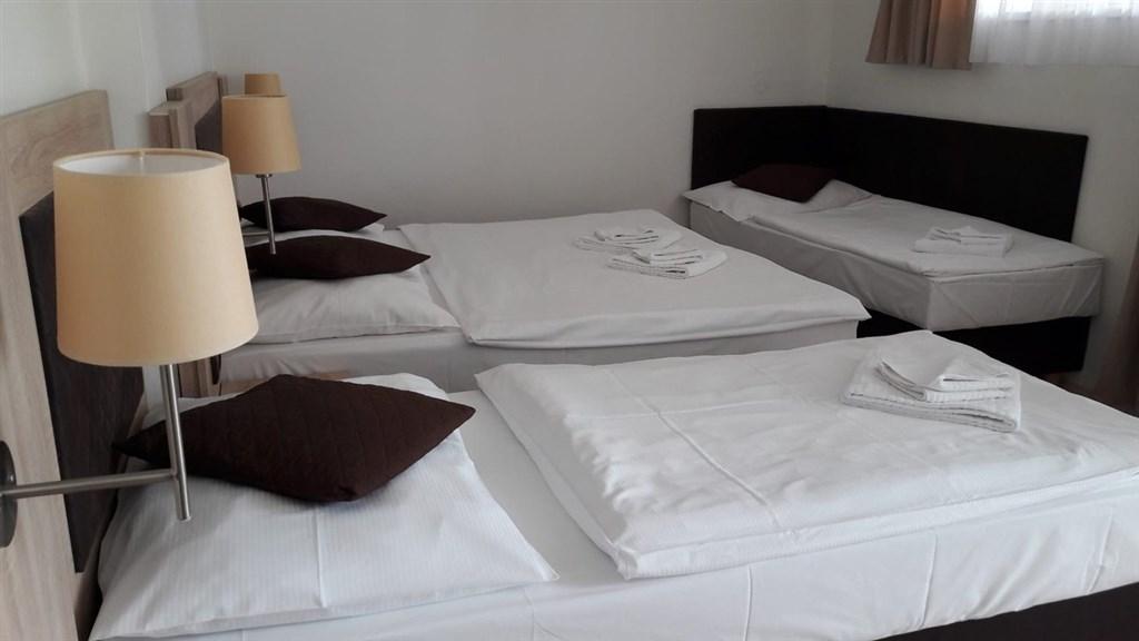 Wi-Fi. Některé s možností až 2 přistýlek. Tří a čtyřlůžkové pokoje,