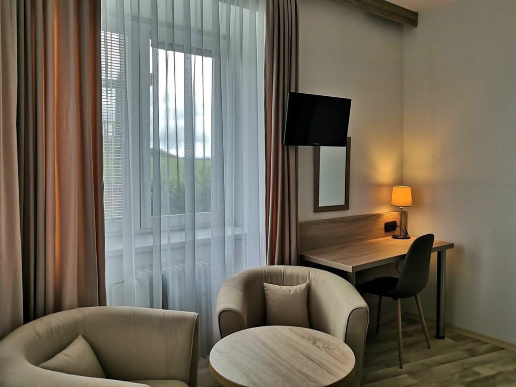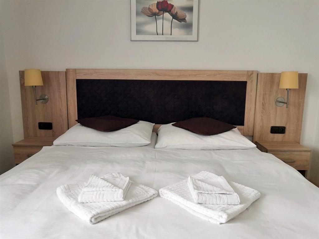 Hotel má pohodlné, standardně vybavené pokoje, některé s palandami.