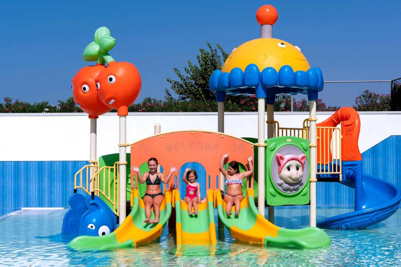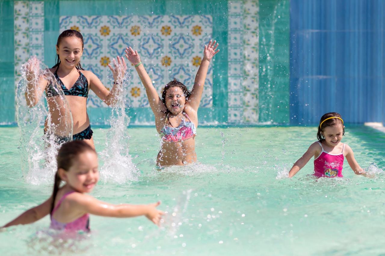pro ně s houpačkami, skluzavkami plus bazén s krytými skluzavkami.
