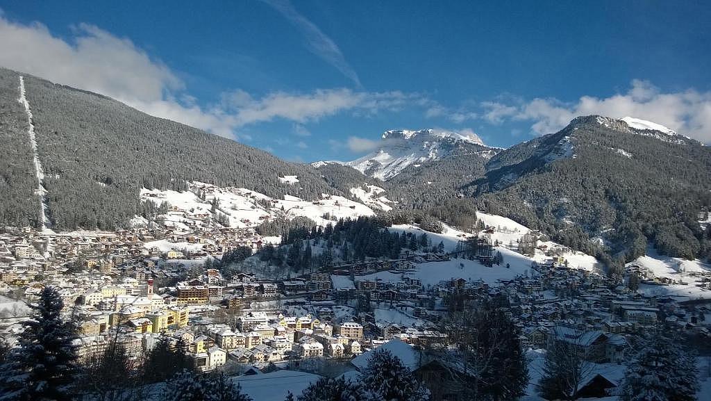 jedno z těch bližších středisek Dolomit při cestě z ČR#- pestrý