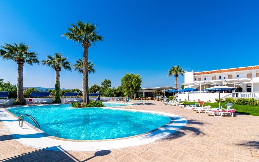 blízkosti místní písčito-oblázkové pláže. Areál s bazénem, barem a