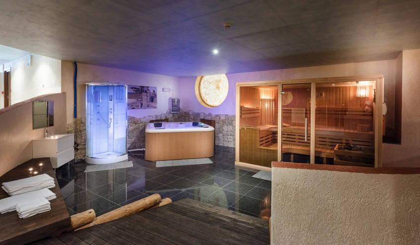bazén s lehátky a slunečníky, sauna, vířivka, sluneční terasa,