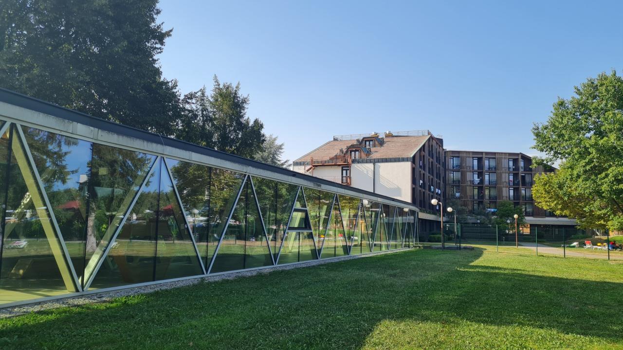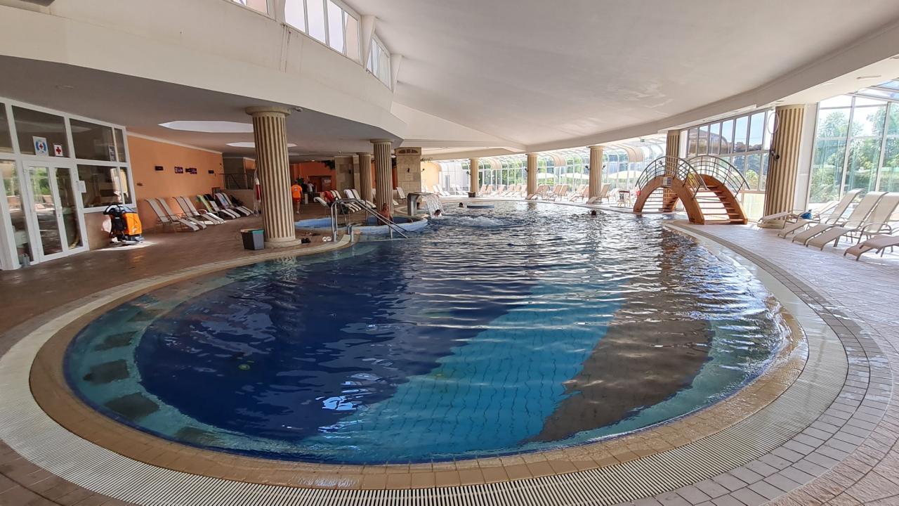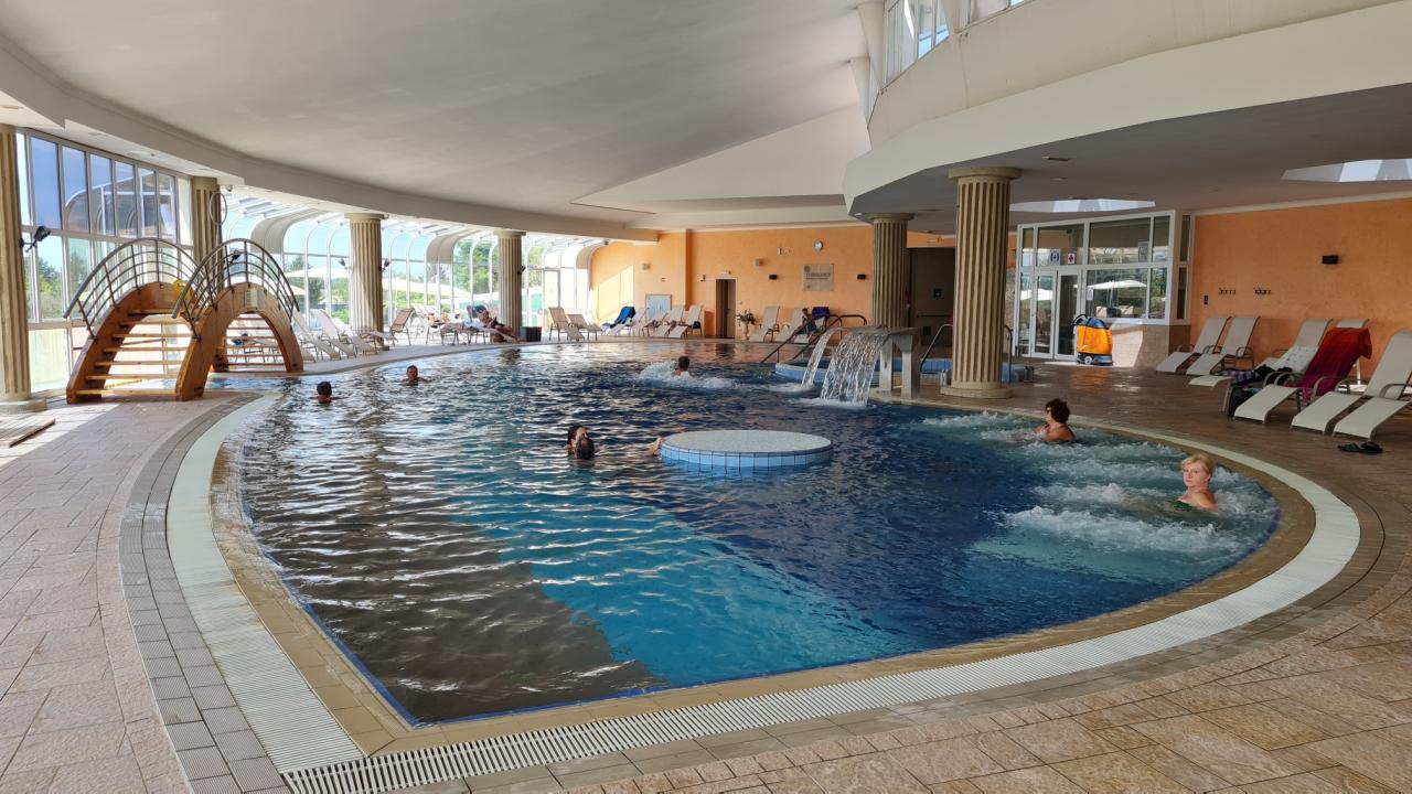 je propojený chodbou s wellness Thermalium. Jeho součástí je krytý