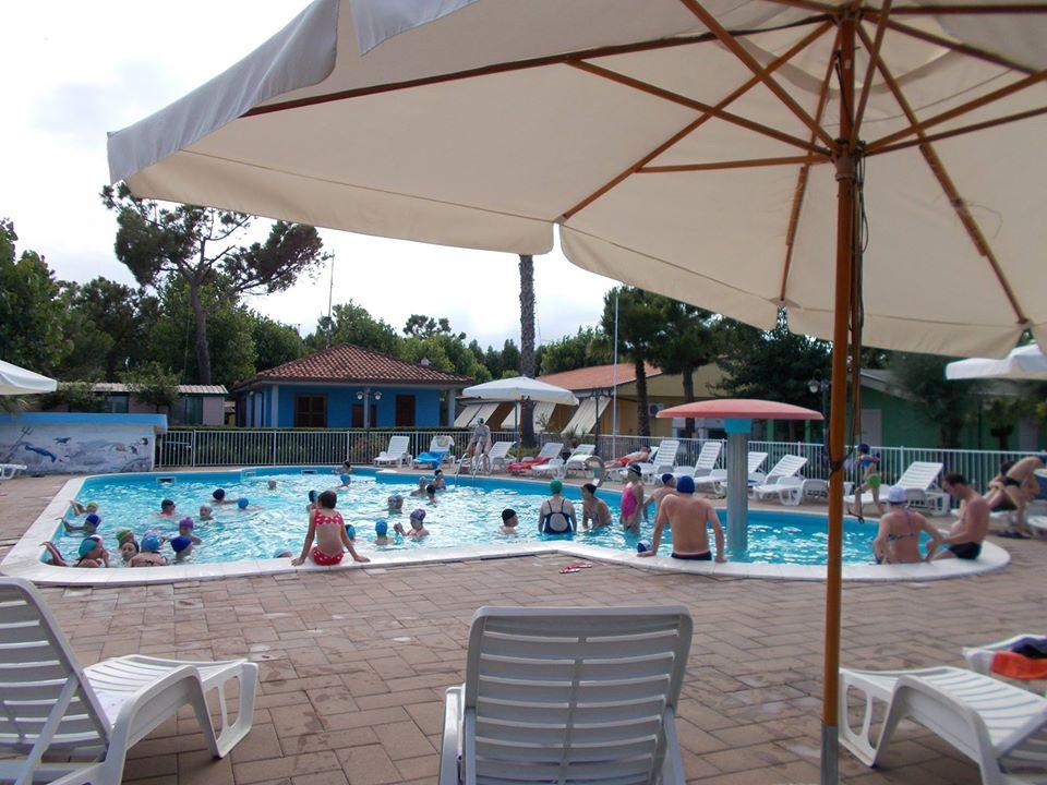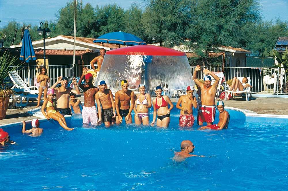 bazén s masážním hříbkem a lehátky se slunečníky (provoz 1. 6.-31.