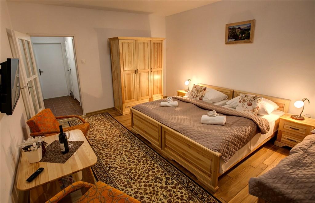 2 - lůžkové pokoje KOMFORT s přistýlkou, Spr.+WC, SAT/TV, Wi-Fi, balkon.
